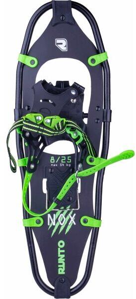 A Runto NOX hótalp remek választás minden hórajongó számára. Szerkezete kényelmes mozgást tesz lehetővé a havon, 54 kg-os testsúlyig. Ebbe a súlyba bele kell számítani az összes ruhát, cipőt és egyéb felszerelést, amit hordozol. A hótalp 21×63 cm-es felülete egyenletesen osztja el a súlyt, és megakadályozza a mély hóban való elsüllyedést, az acéltüskék pedig megakadályozzák a csúszást. A hótalp a One-Pull gyorskioldó pánt segítségével könnyen rögzíthető a cipőhöz, a csatos állítható öv lehetővé teszi a méret szükség szerinti szabályozását. A kényelmes mozgás érdekében a cipő orra forgó alaphoz van rögzítve. A könnyű hordozásról a cipzárral és fogófüllel ellátott szállítótáska gondoskodik.